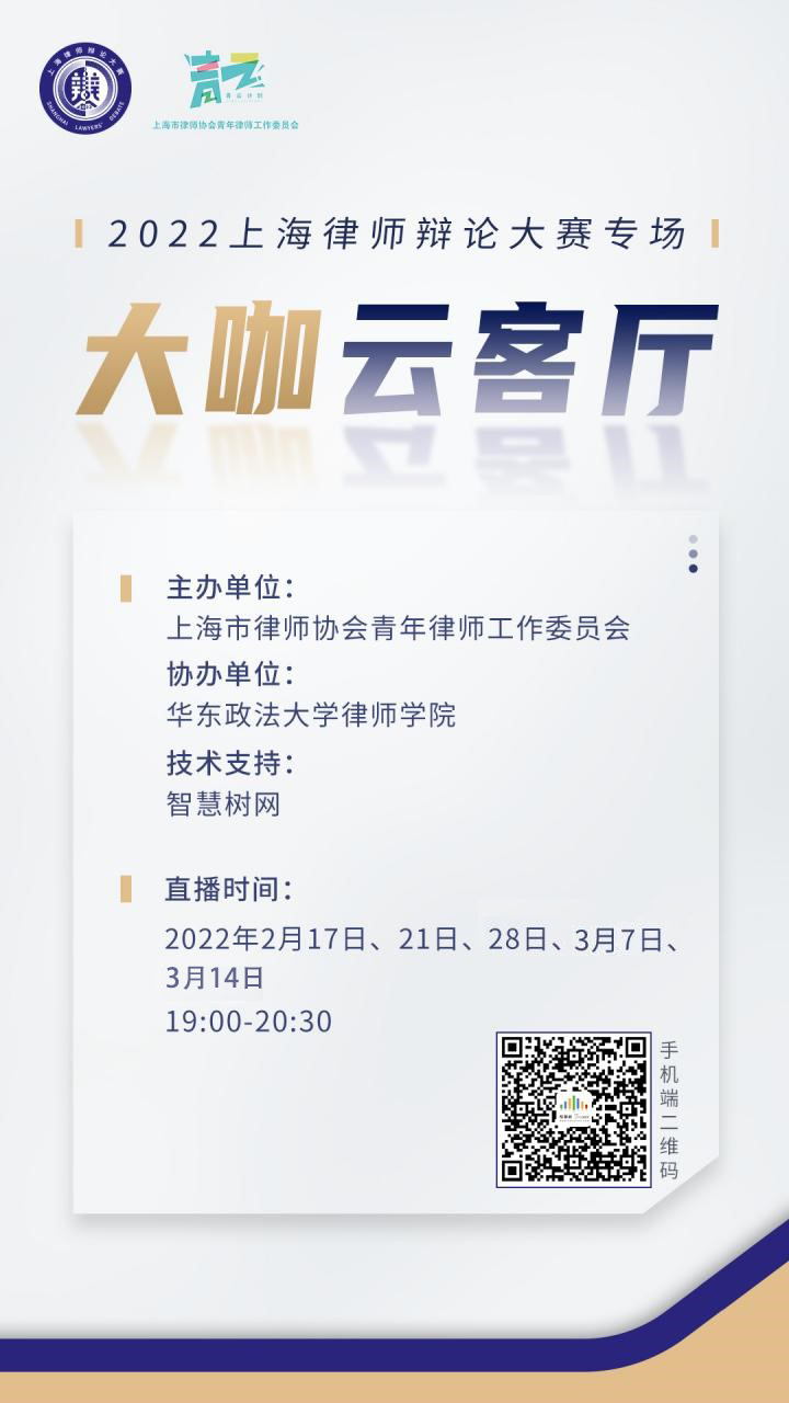 2月21日晚七点,第二期“大咖云客厅”将如期与您云端相见!本期直播延续第一期的形式,邀请风格迥异的三位律师大咖、辩论精英,与您分享上海律师辩手们的精彩故事,带您走进潮起云涌的辩论世界!