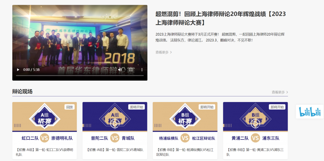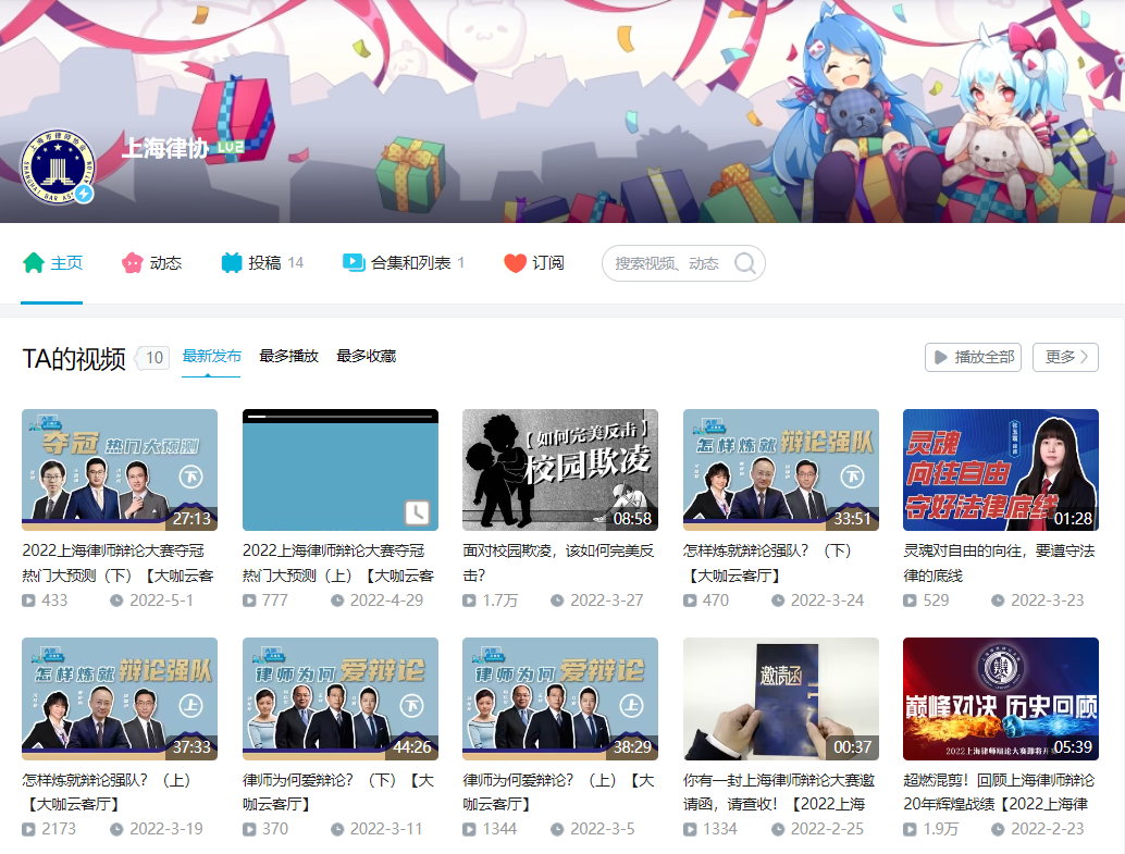 2021年10月,上海律协正式注册B站官方账号,进入www.bilibili.com或打开哔哩哔哩客户端,搜索“上海律协”,进入账号主页即可一起云观赛啦,还可以在这里发弹幕与大家一起讨论。快来加入我们的粉丝大军吧,记得一键三连哦!